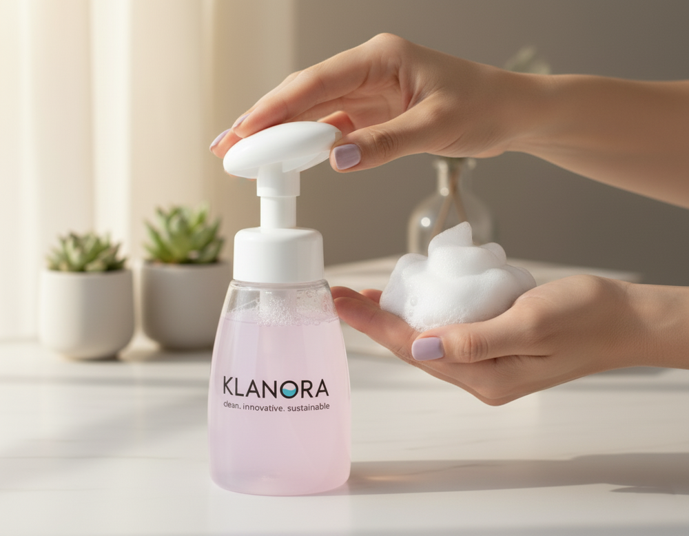 Drop in one handwash tablet. Coconut-based, skin-safe, and zero plastic waste.